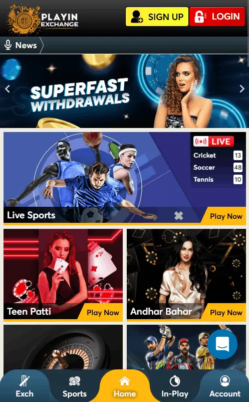 Talking about PlayInMatch reviews, our betting site has been considered the best. In just a few minutes, players can finish the registration process and choose their favourite currency. Although the platform is accessible worldwide, Indian gamers can access localised versions in Hindi and English. The moment you finish the sign-up process, you can start placing bets instantly.